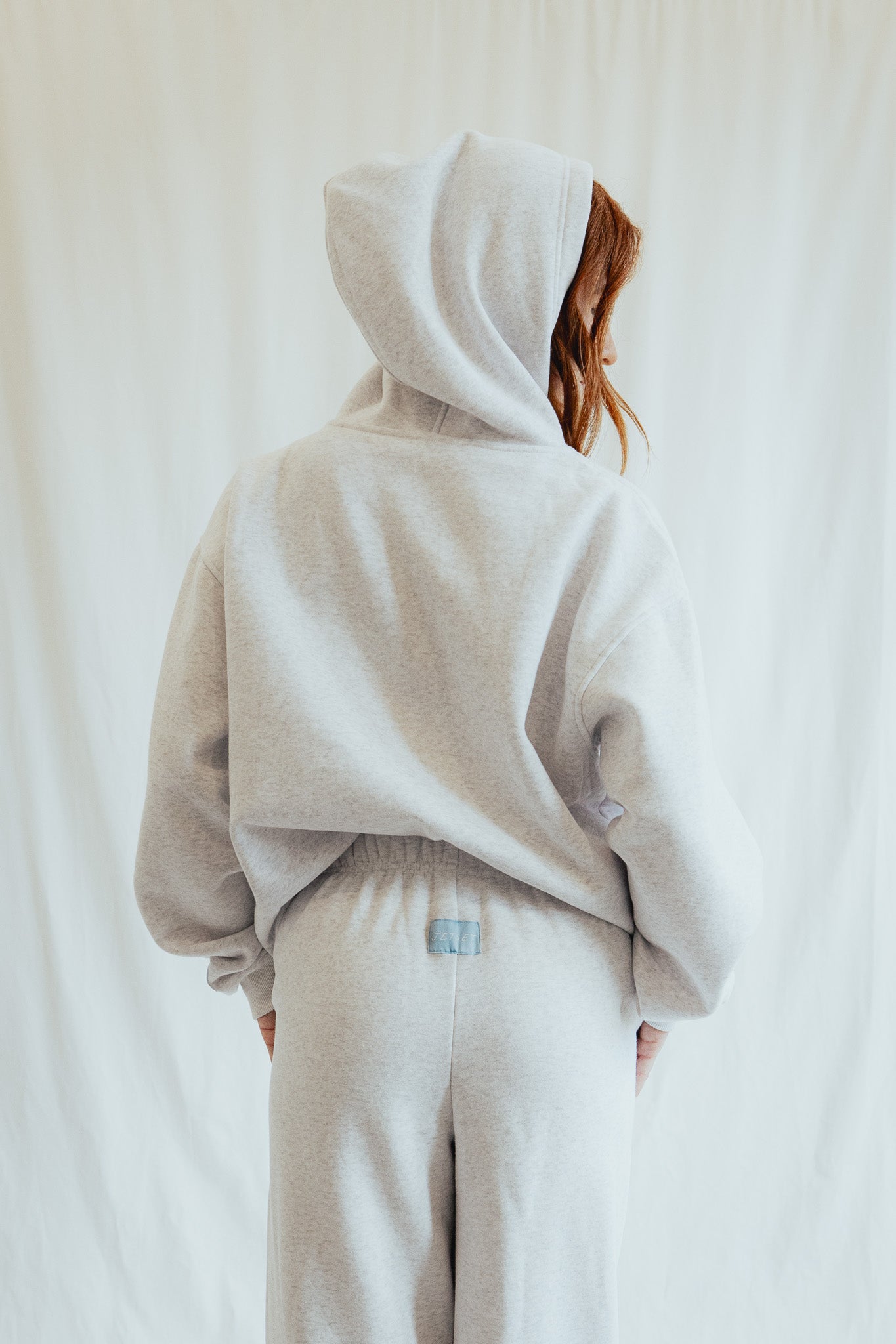 - Ash grey fleece hooded pullover