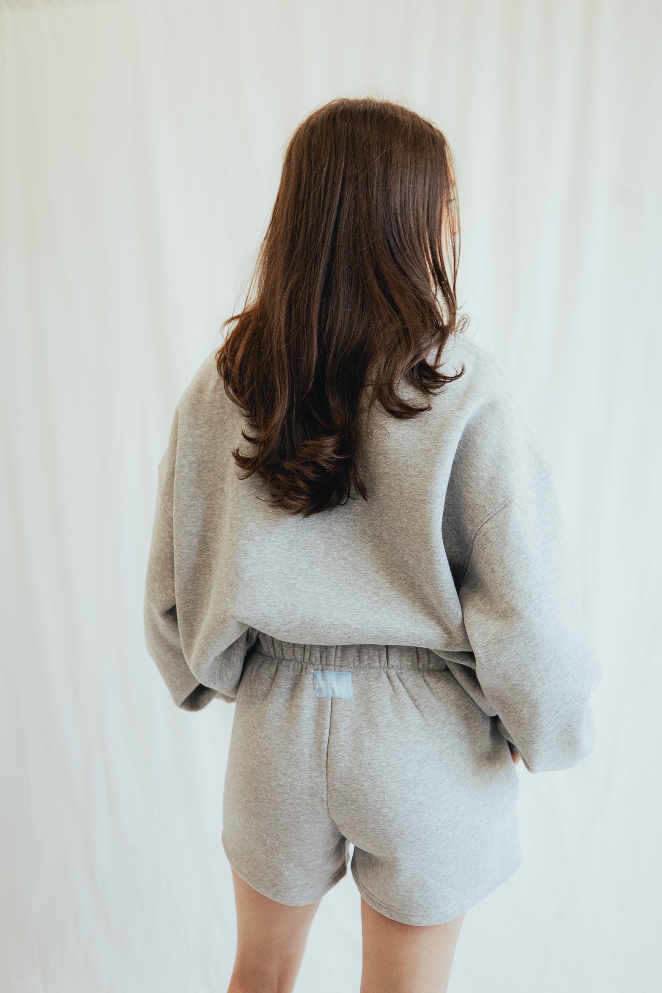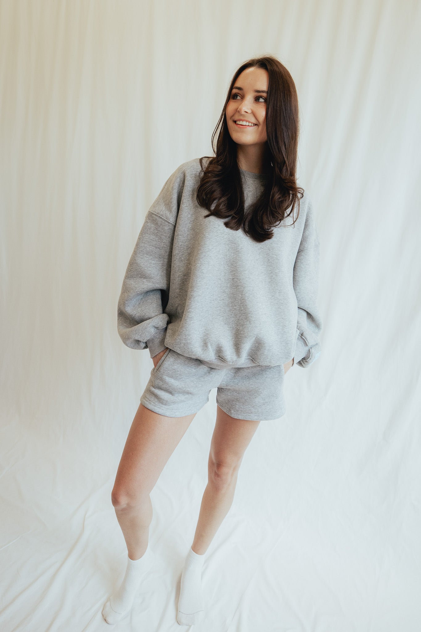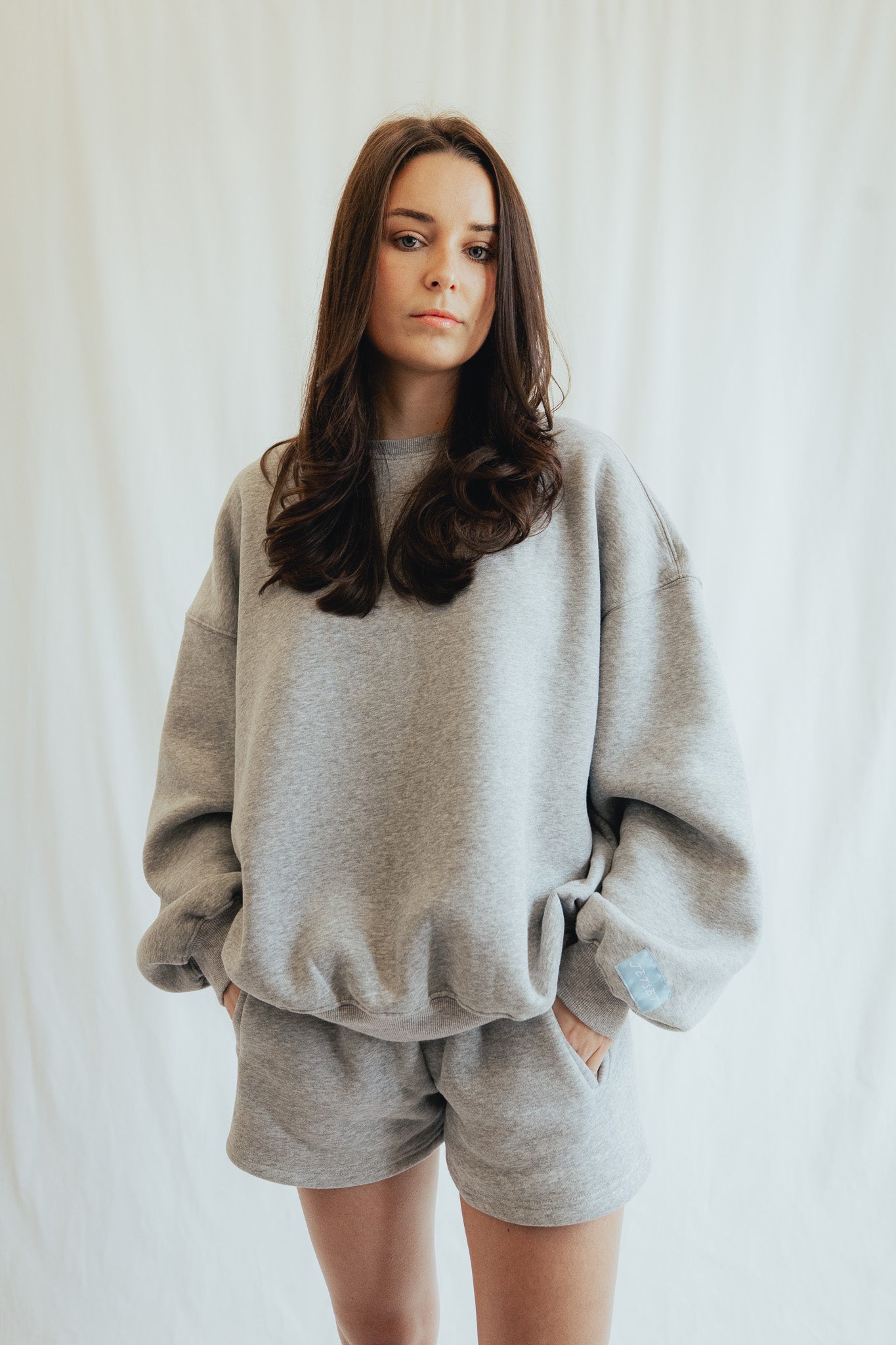 - Dark heather grey fleece crewneck pullover sweatshirt